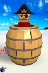 3Dの樽にナイフ刺してゆく黒ひげ危機一発のiPhoneアプリ版と思って良いと思います。