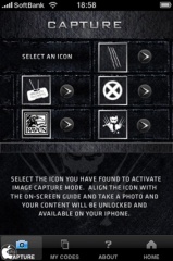 公式サイト、ゲームパッケージ、ゲームプレイシーンにあるイメージと、iPhoneアプリ内に用意された5つのイメージを、iPhone 3Gのカメラで撮影してマッチさせます。