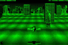 ゲームは、本体を揺らして機体を操作し、建物などを避けながら前進するという、これまた8bitパソコンソフトにありがちな単純なゲームです。