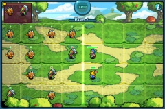 横に8マス、縦に4マスのエリアが表示され、横半分が自分のエリアで、そこに、ジョブキャラクターを配置して、隊列を成して行進してくる敵キャラを攻撃するというゲームです。