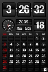 月表示のフリップを指でフリックすると、下のカレンダーが、パタパタと音を立てながら切り替ります。