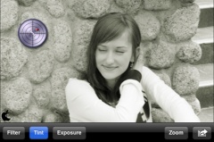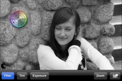 また、Tint(トーン調整)、Exposure(彩度/明るさ調整)も調整ガイドが表示され、画面上を指でなぞるだけで行なう事ができます。
