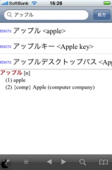 サンプル例辞書として、EDICT2辞書がバンドルされているので、どんな感じで検索結果が表示されるのか確認出来ます。