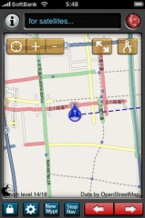トラックモードでは、進行方向を常に上表示させるか、常に北を上に表示させるかを選択可能で、iPhone 3Gのカメラを使用して、写真を加えた軌跡ログやポイントの追加が出来ます。