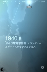アプリを起動すると、お馴染みの二十世紀の歴史がランダムに表示されては消えてゆきます。