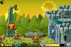 騎士を倒すことでゴールドが手に入り、そのゴールドで、強固な扉を買ったり、城に武器を配置して、指で弾く以外にも防御することが出来ます。