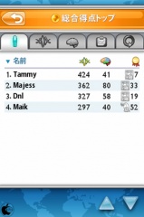 このiPhoneアプリ版は、3人までと対戦することが可能で、また、ハイスコアを送信し、Facebookで友人と脳年齢を共有したり、オンラインスコアランキングを見ることが出来るようになっています。