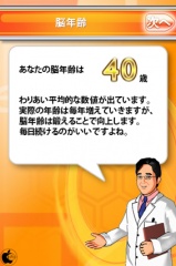 脳年齢測定では、出題される問題全てに回答すると、脳年齢を評価してくれます。