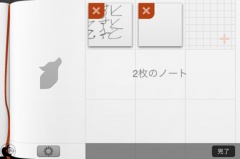 画面左の中綴じ部分にあるマークをタップすると、全てのメモがサムネイル表示され、ここでメモを削除したり、素早くメモを探して表示させたりすることが出来るようになっています。