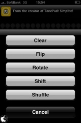 Editボタンをタップすると、全てを消せるクリア、シーケンスを反転させるフリップ、回転させるローテーション、ずらすシフト、ランダムを発生させるシャッフルが用意されていて、好きなボタンをタップすることで、意外な音を作り出すことが出来ます。