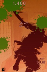 影絵で登場するサムライのうち、刀を抜いたサムライの時だけ、iPhone/iPod touchの画面を指でフリックして切り倒します。