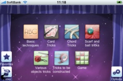 見たい手品のジャンルを選択し、さらに表示されるトリックのリストの中から選択します。