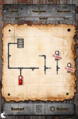 マス上に配置されたパイプを指でタップして、ドラム缶から流れる石油を、給油機まで流す道をつくるゲームです。