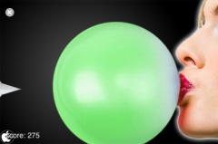 するとガム風船が膨らみます。ゆっくり膨らまし、長く膨らまし続けるとスコアが上がります。