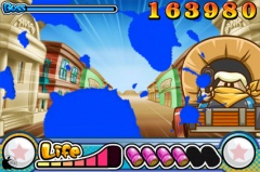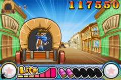 3つ目のパートは、幌馬車に乗ったボスキャラがペンキ缶を投げつけて来るので、そのペンキ缶をシューティングして跳ね返します。