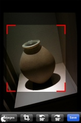 撮影した写真を選び、画面上に表示される赤い枠線を移動し、切抜き範囲を指定したら、右下のSaveボタンをタップすると、切り抜いた写真が保存されます。