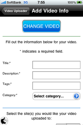 CirclePix.comが、iPhone/iPod touch用ビデオアップローダーアプリ「Video Uploader」を、App Storeにて販売を開始していたので試してみました。