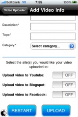 iPhone 3G、iPod touchでは動画撮影は出来ませんが、このアプリを使えば動画のアップロードが可能になります。
