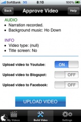 そこまで完了すると、今度はアップロード先を選び、Uploadボタンをタップすると、指定した先にアップロードされます。