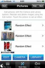Build Videoの画面が表示されるので、一番上のSELECT IMAGESをチェックし、カメラで写真を撮影するか、写真ライブラリーで写真を選択します。