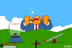 過激なバイオレンス・ネタをやブラック・ジョークを繰り広げるWebコメディ「JoeCartoon」で公開されているブラックジョークゲーム「Blend The Boss」をiPhoneアプリ化したゲームアプリです。