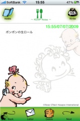 Rose O'Neill Kewpie International Co.,Ltd.が、iPhone/iPod touch用キューピーメモ帳アプリ「KEWPNotes」を、App Storeにて販売を開始していたので試してみました。