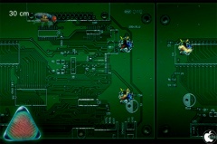 アプリには、映画の予告編やストーリーなどが収録されていて、ゲームは、高度の知能を持った動物捜査官で、ハエのムーチを操作して、コンピュータ内をどれだけ長い時間、飛んでいられるかを競う内容です。
