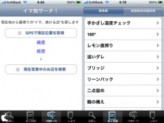 イマ焼きサーチ!をタップすると、現在地情報と営業時間を元に、今食べられるお店を検索してくれます。