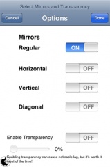 画面右端のアイコンをタップすると、パターンの描かれ方について、反射、水平、垂直、対角線といった指定を行なう事が出来ます。