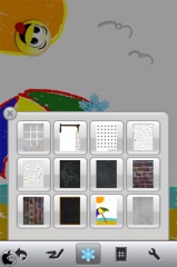 画面下の右から2つ目の長方形アイコンをタップすると、12種類の背景が表示され、キャンバスの背景を変える事ができます。