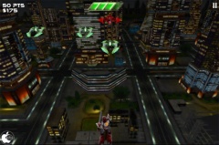 ロボット型のプレイヤーを左右に動かし、エイリアンの敵機をシューティングして撃ち落とすゲームアプリです。
