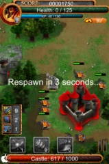 敵を倒すことでゴールドが貯まり、城の真ん中に表示されている袋をタップすると、所持しているゴールドで、攻撃力を強化したり、ライフゲージを回復したり出来ます。