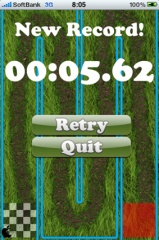 Raceをタップすると、5つのコースが表示されるので、その中から好きなコースを選び、スタート地点からゴール地点までの時間を競うゲームをすることが出来ます。