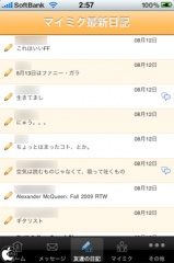 友達の日記をタップすると、マイミクの最新日記を読む事ができ、絵文字を使用してのコメント入力もすることが出来ます。