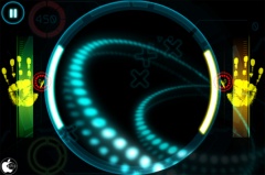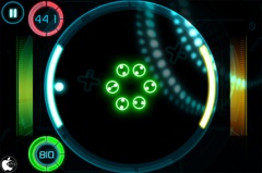 中央画面をタップすると、エネルギーボールが動き出し、ボールが円の外に出ないように、左右のバーを動かして弾きます。