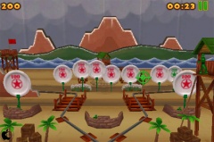 ボー・ビープ、ウィージーのキャラクター風船に向って、ピンを投げる風船割りゲーム
