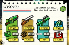 エリアンを倒したり、空中のアイテムや、箱に表示されたアイテムなどをゲットするとポイントが貯まり、途中の自動販売機で強力な武器などを購入することが出来ます。