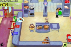 従来の経営シミュレーションゲームとは異なり、1つの皿に複数の加工食品を並べてお客に渡したり、食べ終わったお皿を下げるといった動作が加わっているのが特徴です。