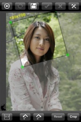 ピンチ操作で切抜きエリアを自由に選択でき、画面下の角度アイコンをタップすることで、切り抜きエリアを少しずつ回転させることが出来ます。