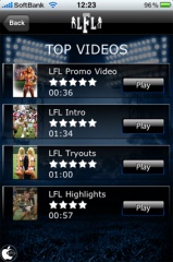 TOP VIDEOSをタップすると、LFLのサイトでも公開されているプロモーションビデオを見ることが出来ます。