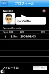 そのランキング順位をタップすると、そのランキングを出した人のプロフィール情報が表示され、そのユーザーをフォローすることが出来るようになっています。
