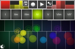画面下は左から右にドレミの音階が振られていて、コードを選択しながら、下の画面をタップして演奏します。