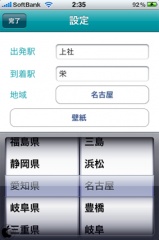 通勤情報は、デフォルトが、東京ー新宿のままなので、画面下のiボタンをタップし、自分が通勤で利用する駅情報に変更します。