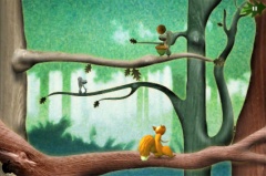 黒いリスが投げるドングリを、黄色いリスに近づく手前でタップするとキャッチすることが出来ます。