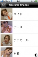 Menuから、Costume Changeをタップすると、メイド以外に、ナース、チアガール、水着、OLなどに変える事ができます。