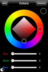 カラーツールは、スウォッチとウィールが用意されていて、カラー上を指でタップするだけで選択することが出来ます。