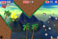 ゲームを始めると生首が落ちてくるので、それを指でフリックして飛ばし、連続タップして得点エリアに乗せていきます。
