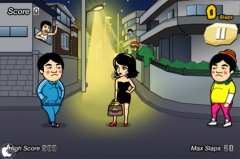 女性に向って寄ってくる男達をタップして、持っているバッグで弾き飛ばしていくアクションゲームアプリです。