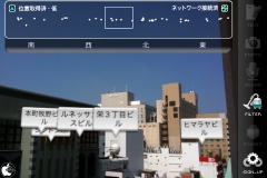アプリを起動して、端末情報の取得に同意した後、iPhoneのカメラが起動して、現在地情報を元に、ARタグ情報が表示されます。