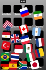 最初は世界の国旗が表示され、画面をタップすると、国旗がバラバラと崩れます。